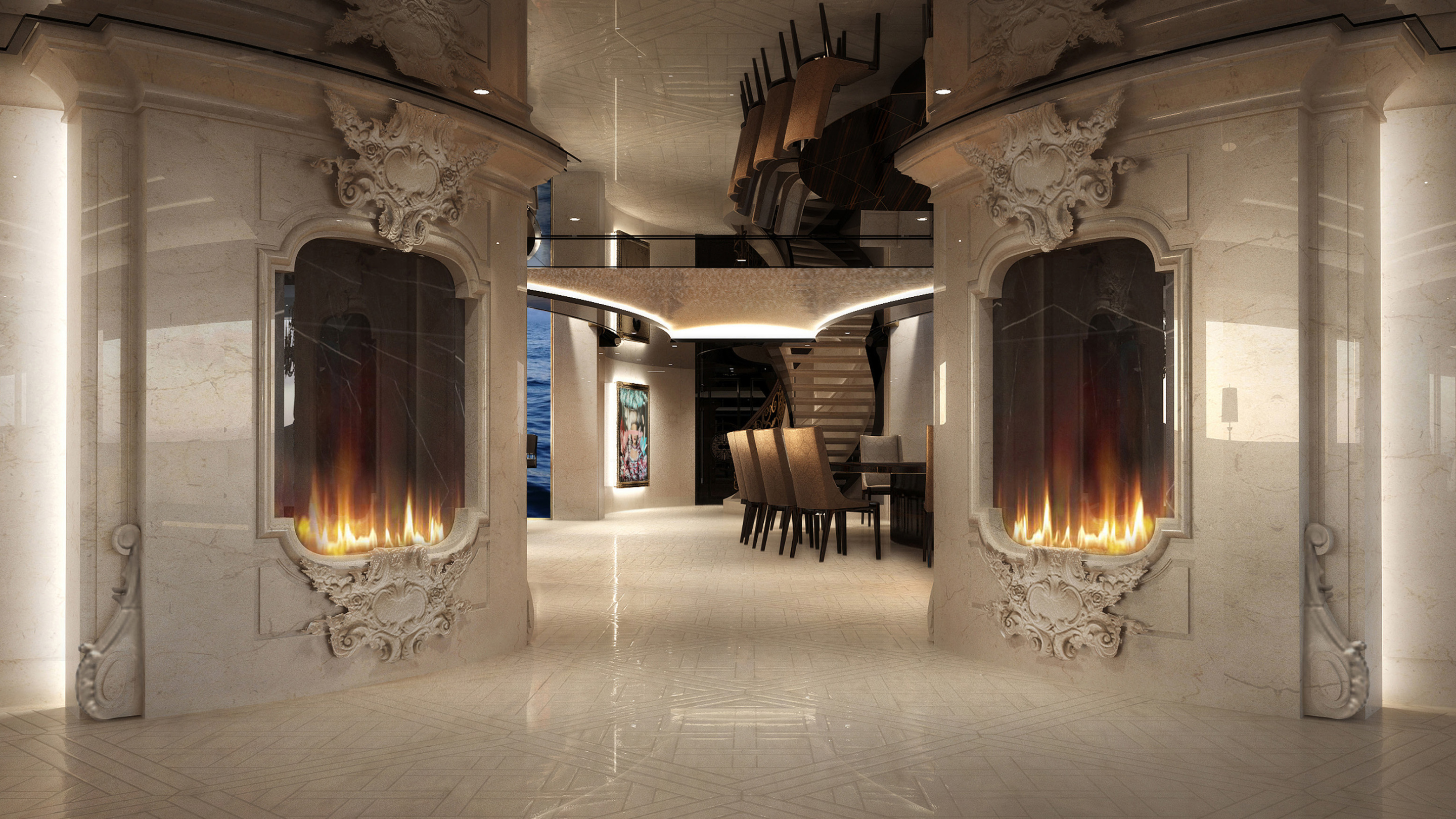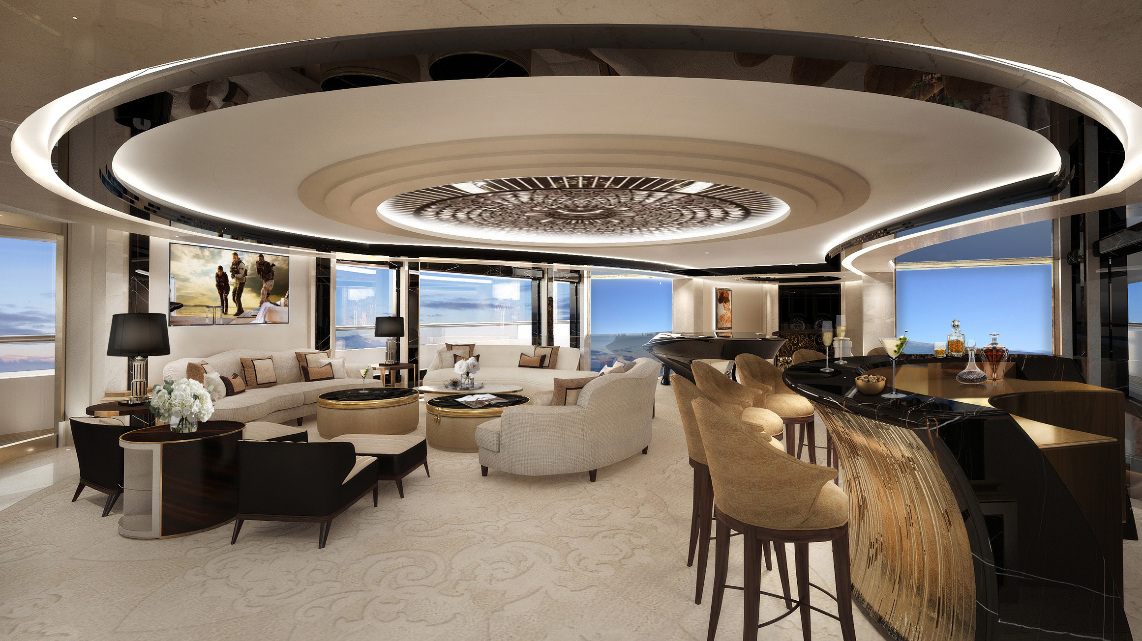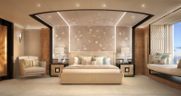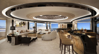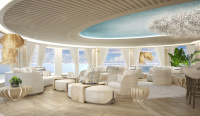 She is defined by an abundance of sophisticated stylings and lavish decor, making each area onboard a unique space that radiates luxury, elegance and exclusivity. From a ceiling reminiscent of that found in the Sistine Chapel, to crisp white salons and a movie theatre fitted with plush teal seating, this yacht is a masterpiece like no other.