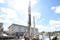 While the lift is assembled, work on the haul-out basin to accommodate the historic machine continues. This 220-foot long by 50-foot wide slipway, with a water depth of 21 feet, will allow the machine to hoist all but the very largest yachts quickly, safely and efficiently, and then precisely position them on the 12-acre site.