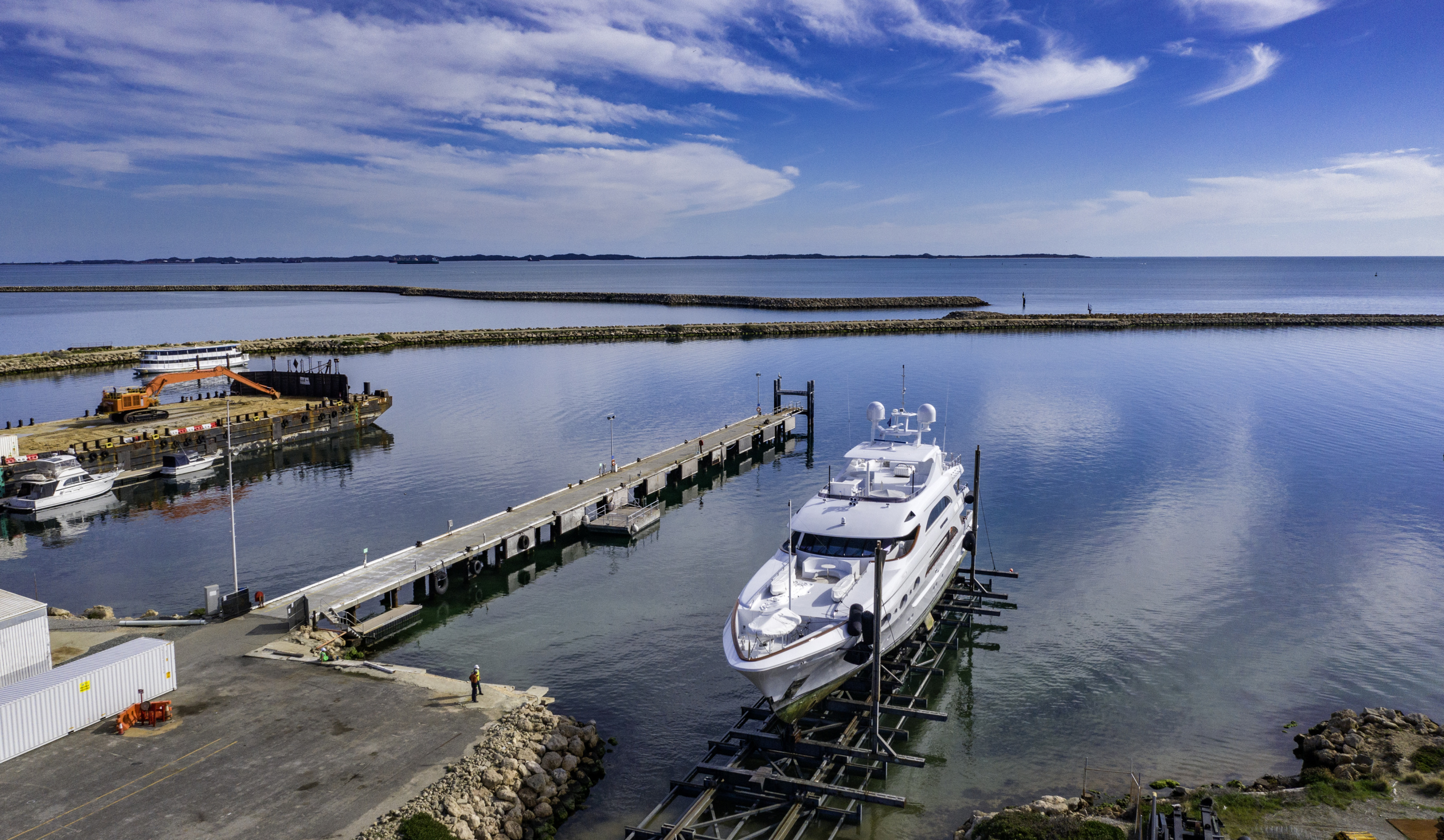 The significant hardstand and deep-water wet berth options are enhanced by 10m and 100m fully enclosed superyacht construction halls, each with dedicated workshop spaces.