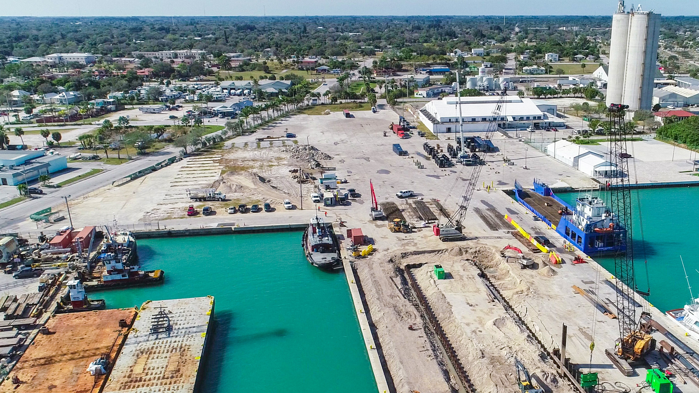 Arriving by truck from the Port of Miami, the boat hoist has gigantic wheels that measure more than 8-feet tall and weigh more than 10,000 pounds each. Once assembled, the lift will be the world’s largest, with a capacity of 1,500 tonnes – the equivalent to nearly 8 Boeing 747 airplanes. It will also be the heart of the shipyard’s first phase of operation.